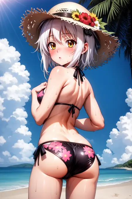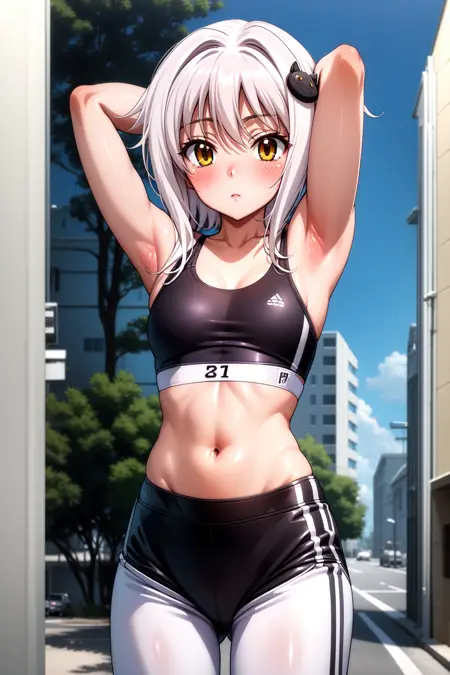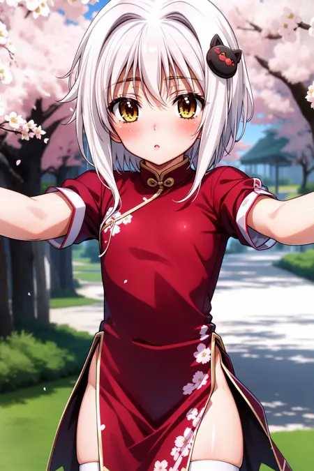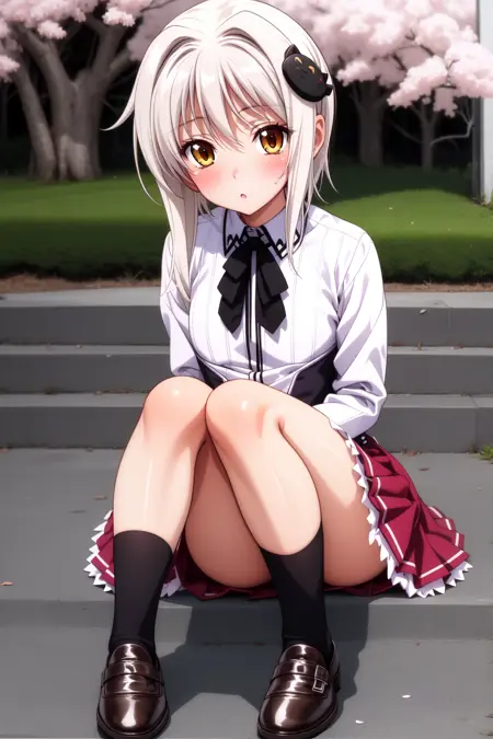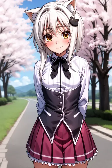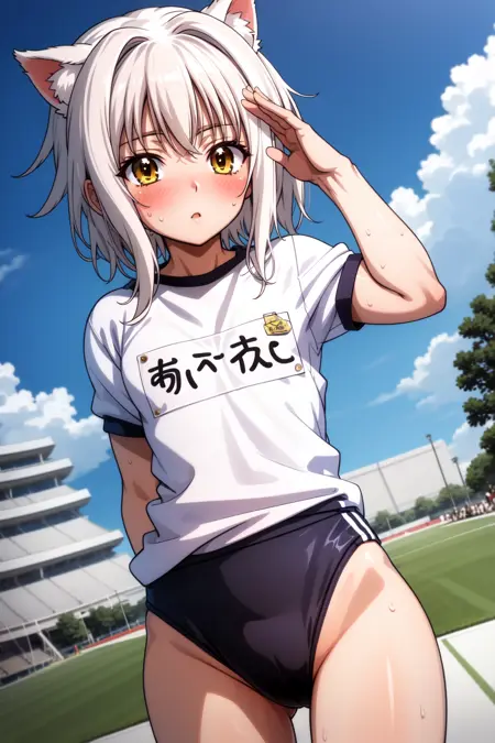 外見:子猫、黄色い目、白い髪、短い髪、髪飾り、