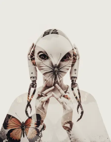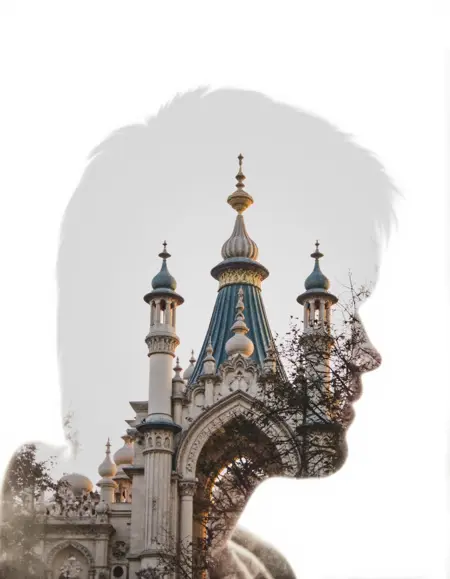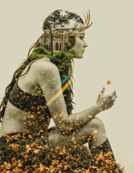 '당신의 프롬프트'를 dan-mountford 스타일로 표현한 더블 노출 사진