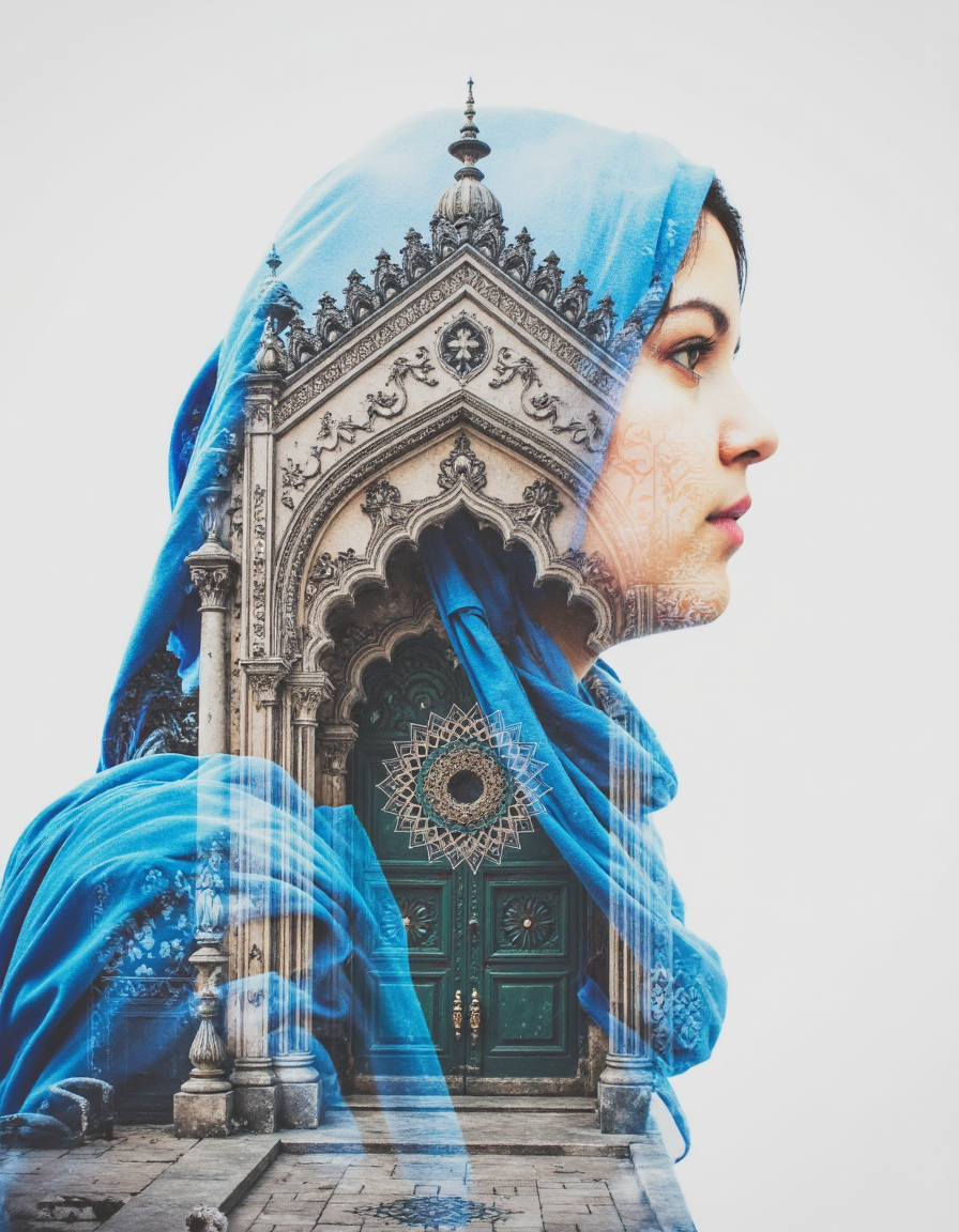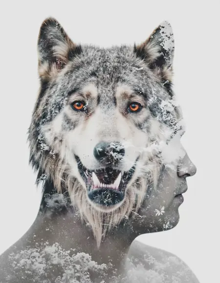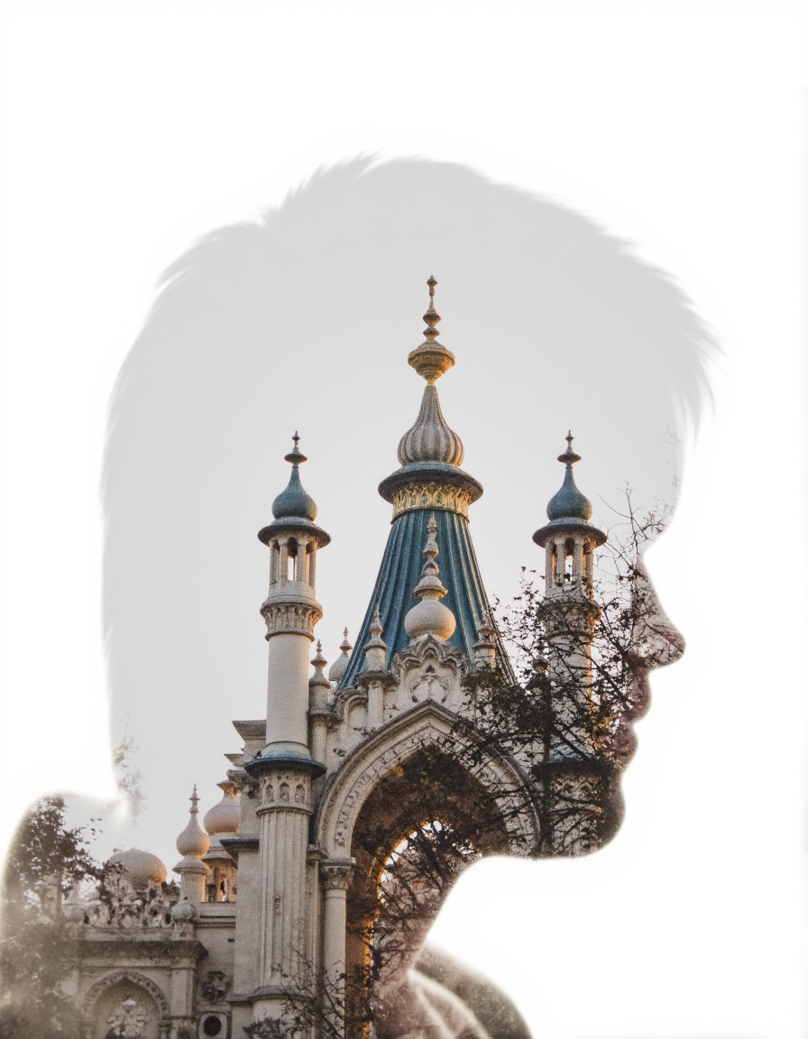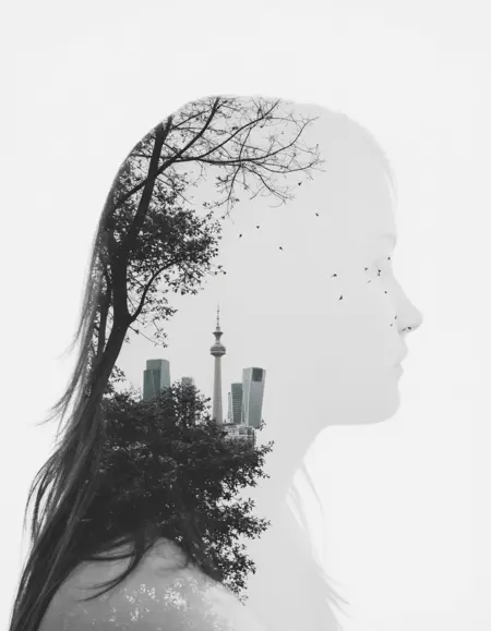 以 dan-mountford 风格创作的“你的提示”双曝光照片