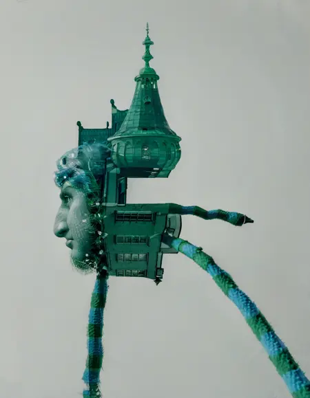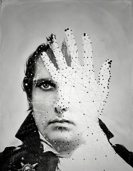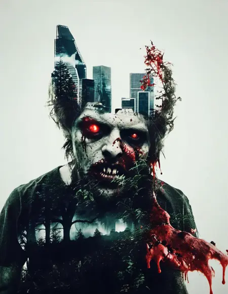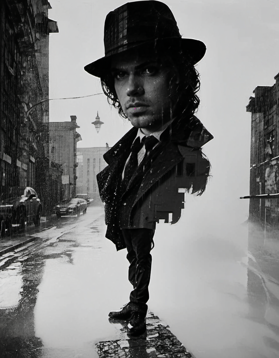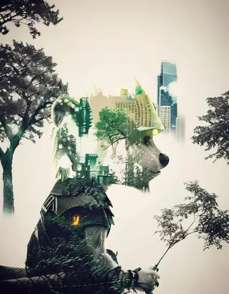 '당신의 프롬프트'를 dan-mountford 스타일로 표현한 더블 노출 사진