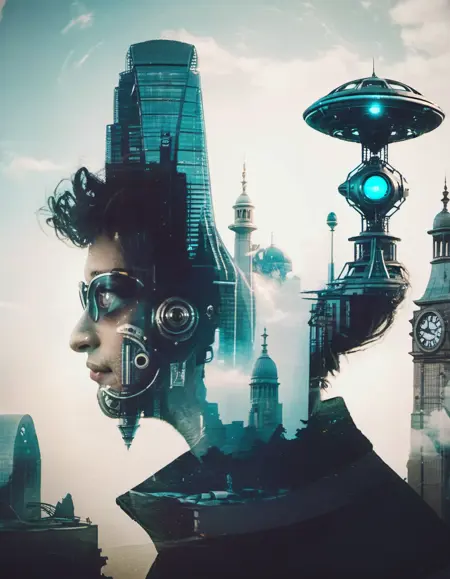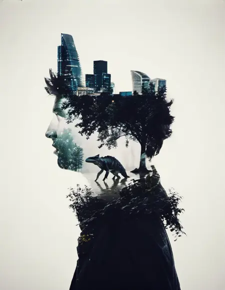 a double exposure photo of 'your prompt' in the style of dan-mountford