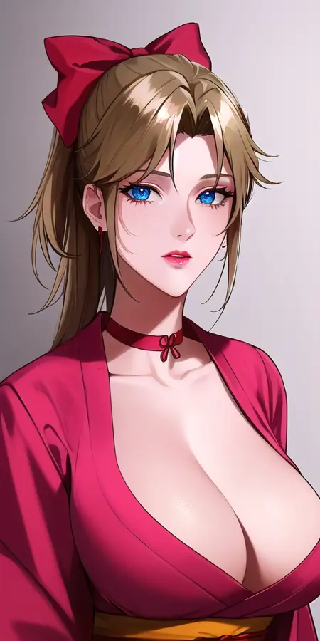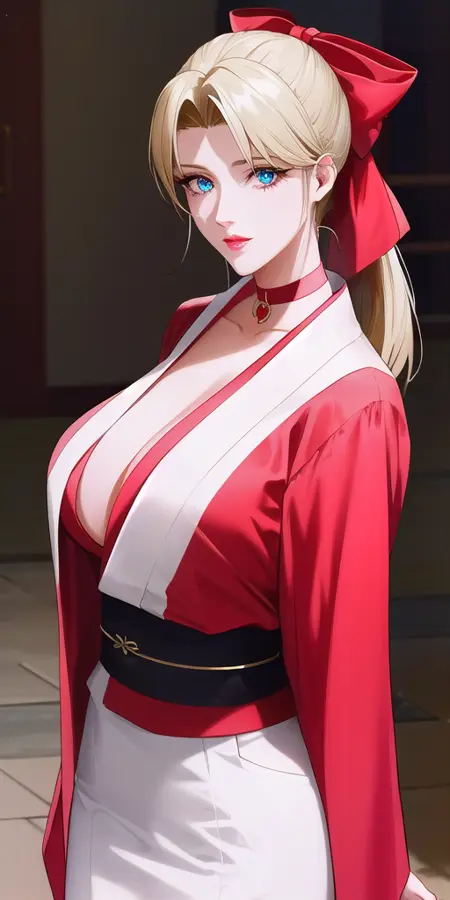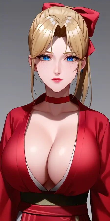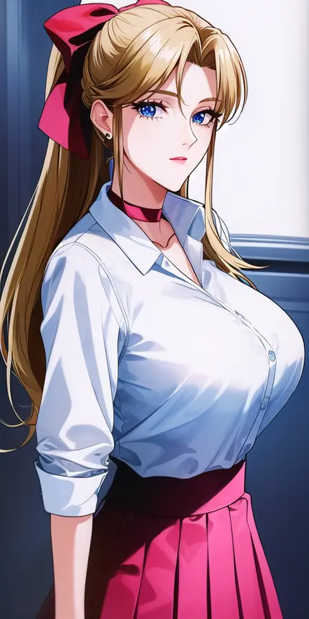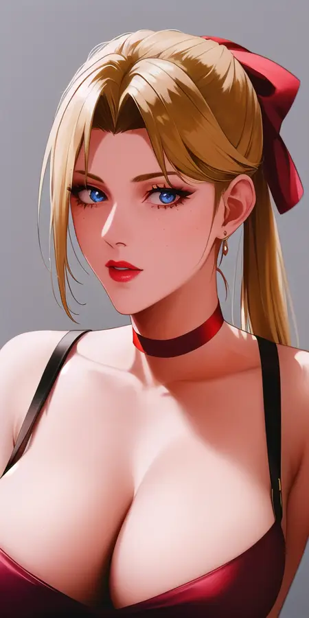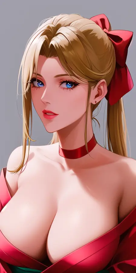lora:LucyMcMillanV3:1 lucy_mcmillan, half_updo_red_hair_bow, red_choker