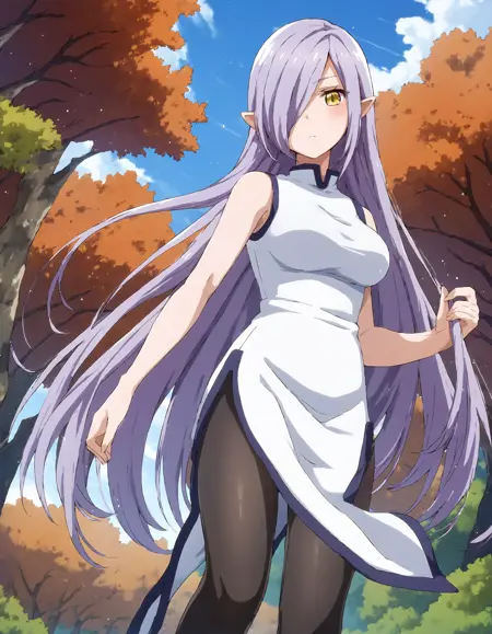 - 特に「座る」ポーズでは、彼女の_長いドレス_が通常より短く表示されることがあります。_長いドレス_の強調度/重みを上げると改善する可能性があります。