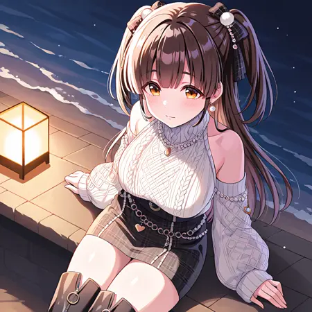 suzumurayu2, two side up, suzlove52 turtleneck sweater, suzlove52 earrings, suzlove52 hair ornament, suzlove52 thigh high boots, suzlove52 high-waist skirt, sweater tucked in,