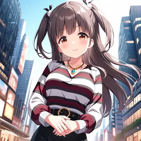 suzumurayu2, yuidol costume, yuidol gloves, yucasual hair ornament,yuidol thigh-highs boots, standing, two side up,