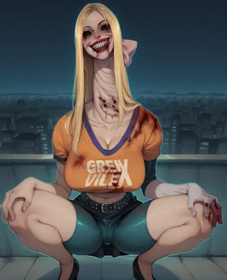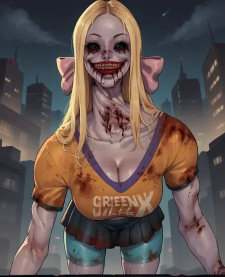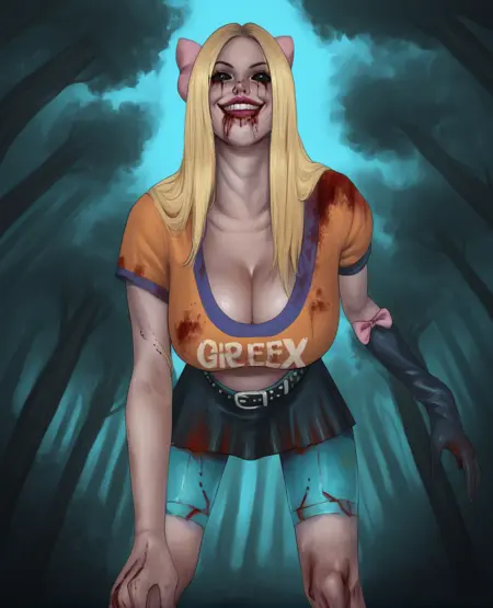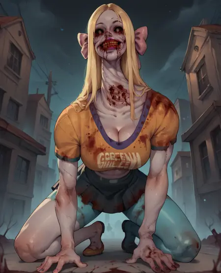 adding horror \(theme\), or zombie, injury, or body horror, may enhance or using non-cutesy styles - body may be dislocated, or anorexic, -> (Normal)