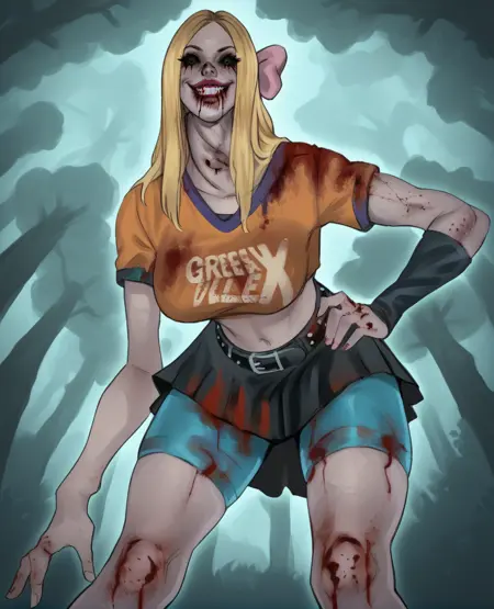 호러 \(테마\), 좀비, 부상, 또는 바디 호러 추가 또는 귀여운 스타일이 아닌 스타일 사용 시 강화 가능 - 신체가 탈구되거나 마른 체형이 될 수 있음 -> (일반)