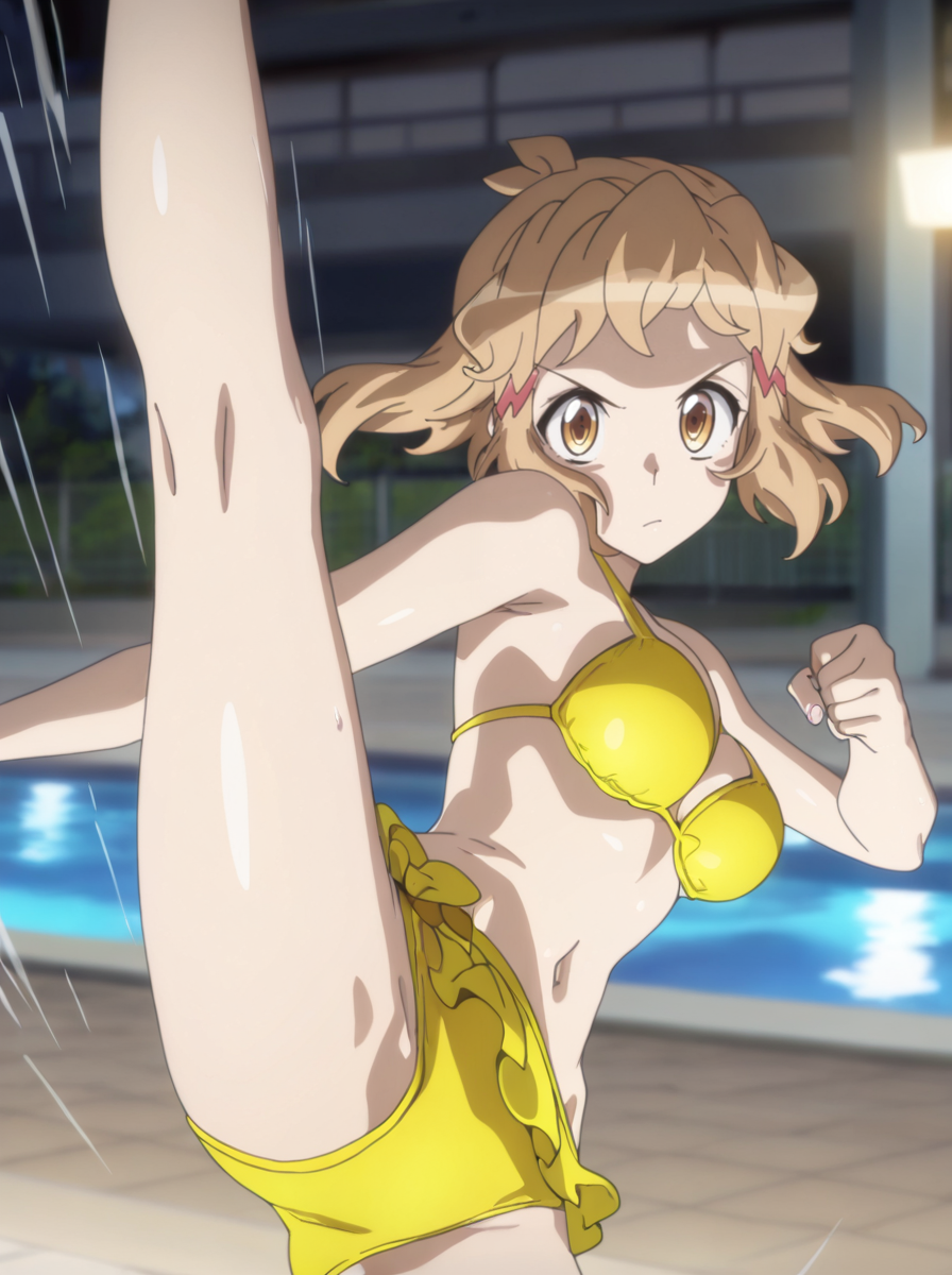 New model this one was trained on only images from the anime so the style it's really baked in, if you want to mix it with another style/clothing please use it around 0.5 , for a nything else use it at 0.8, i tried to do a Gear/casual lora but the Gear on this one it's a little off, so if you want to generate her Gear look please use this one instead: