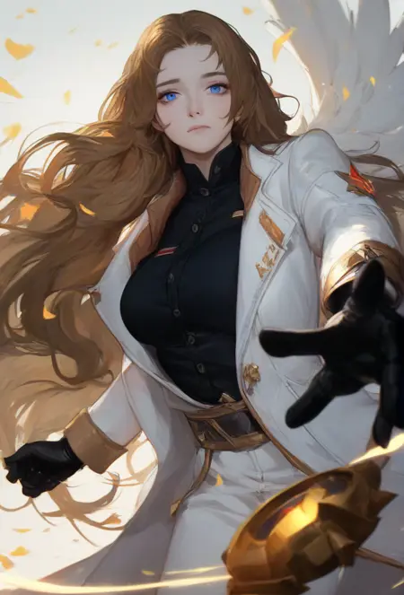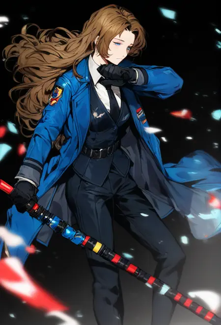 RodionZwei, 바통, 검은 베스트, 파란 코트, 파란 자켓, 검은 바지, 검은 장갑