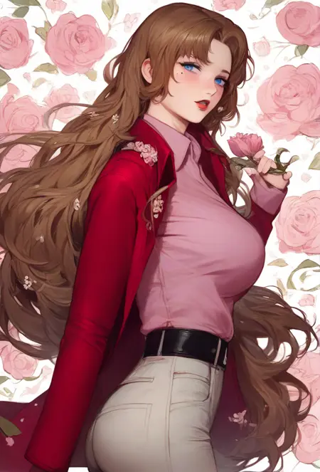 RodionRose,粉红色衬衫,黑色长裤,红色外套