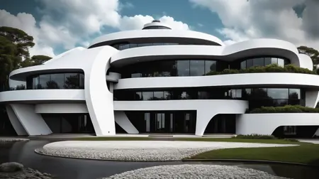 It is recommended to write the following tokens: architecture, building, house, blackout, slate gray, epic lighting, glow, complex details, vegetation, raw, hdr, professional photo.