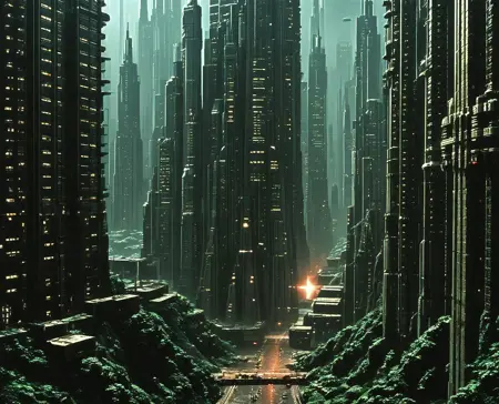 xjx style megastructure, solo, black hair, scarf, ponytail, bare shoulders, stairs