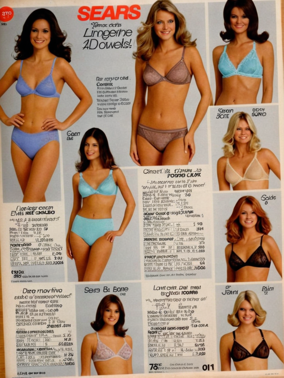 使用此模型重现经典的西尔斯目录模型。该模型与“1940年代”、“1950年代”、“1990年代”、“2000年代”、“2010年代”等年代提示配合效果极佳。可使用特定物品提示(如文胸、内裤等)以获得更聚焦的图像。