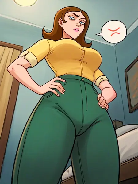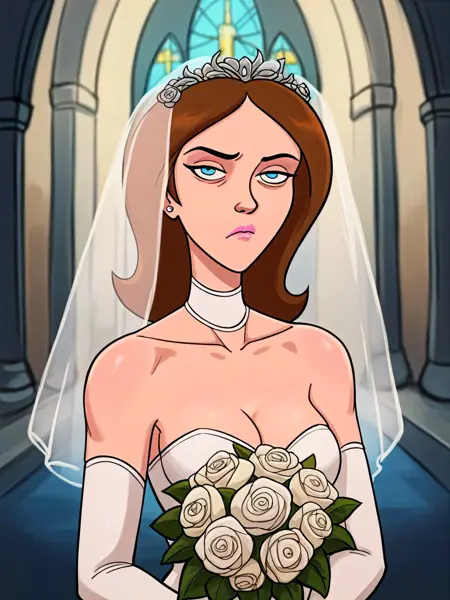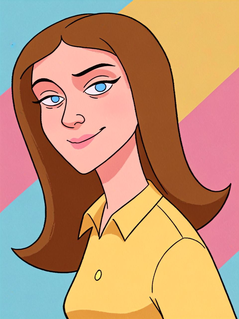 短命に終わったアニメーション情景劇『The Critic』から、ジェイ・シャーマンの味気ない元妻、アーデス。シリーズ全体でのスクリーンショットを多数参照して描かれています。