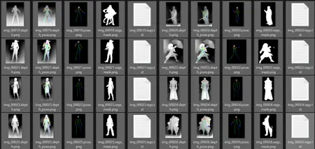 이것은 SFW 깊이 맵, dwpose 포즈, 그 위에 오버레이된 미리보기, 마스크, 그리고 WD 태그 텍스트 파일(conv2nextv2-tagger-v2를 통해 생성)의 모음입니다.