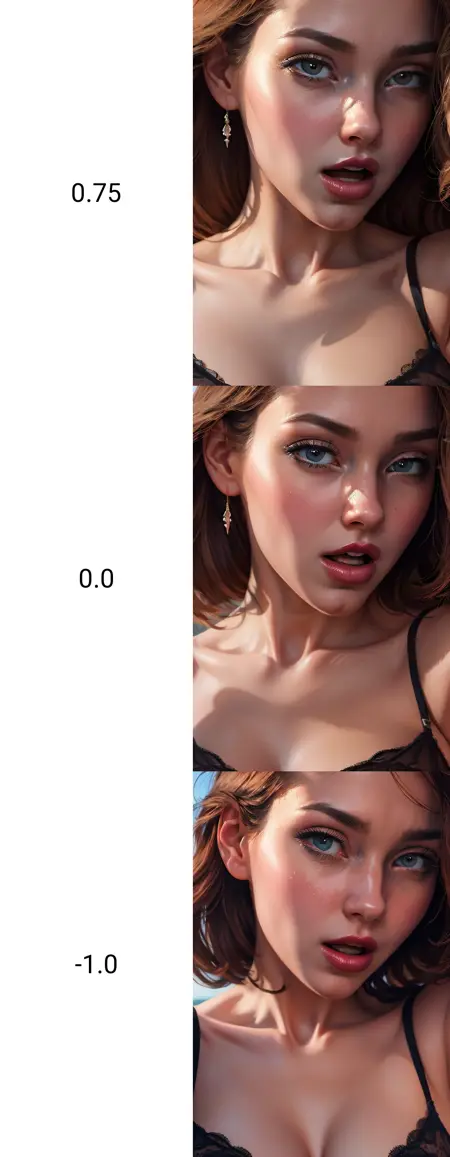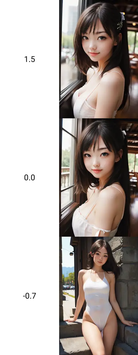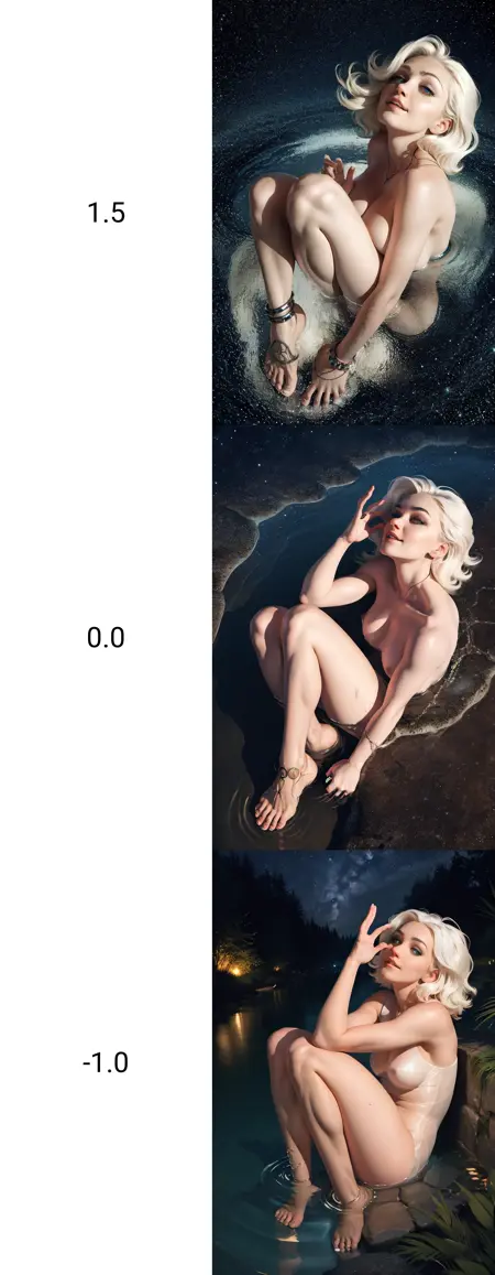 • 1.5는 최적의 가중치가 아닙니다. 좋은 시드를 선택한 후, 0.3에서 1.5 사이의 가중치를 시도해 보세요(모든 가중치는 서로 다른 결과를 제공합니다).