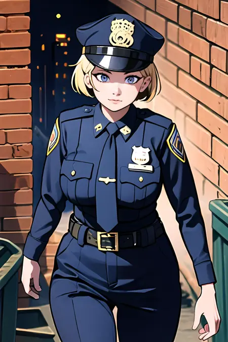 트리거 단어는 없으며, "경찰 모자", "배지", "엠블렘", "벨트", "네ク타이", "긴 소매 셔츠", "바지" 등의 단어는 선택 사항이지만, 때때로 매우 유용할 수 있습니다. "머리가 프레임 밖"은 부정 프롬프트로 사용할 수 있으며, 이는 얼굴을 학습하지 않기 위해 이미지를 자르기 때문입니다.
