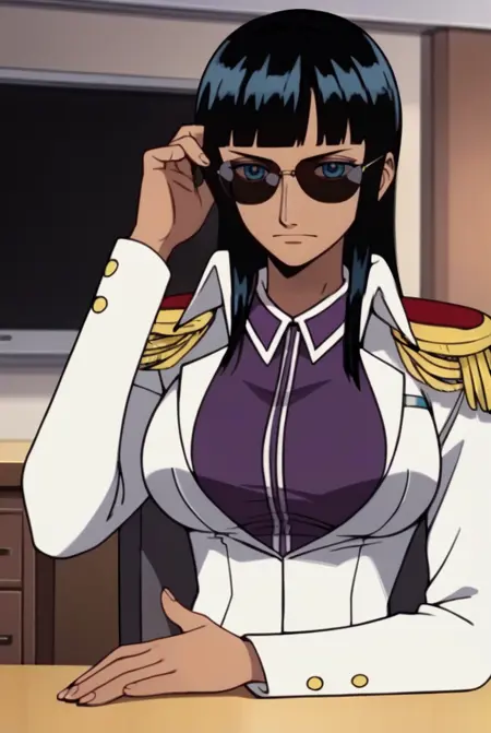 g_eight, sunglasses, tinted eyewear, epaulettes, military uniform, white jacket, purple shirt, collared shirt,