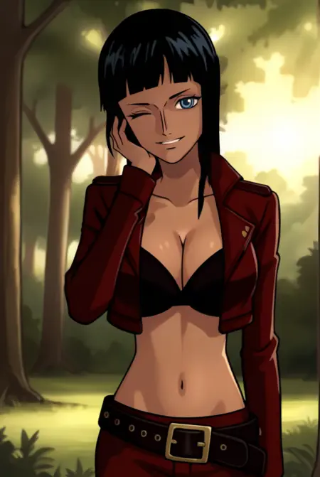secretisland, open jacket, open clothes, cleavage, midriff, black bra, red pants, belt, cropped jacket, red jacket, navel, collarbone,