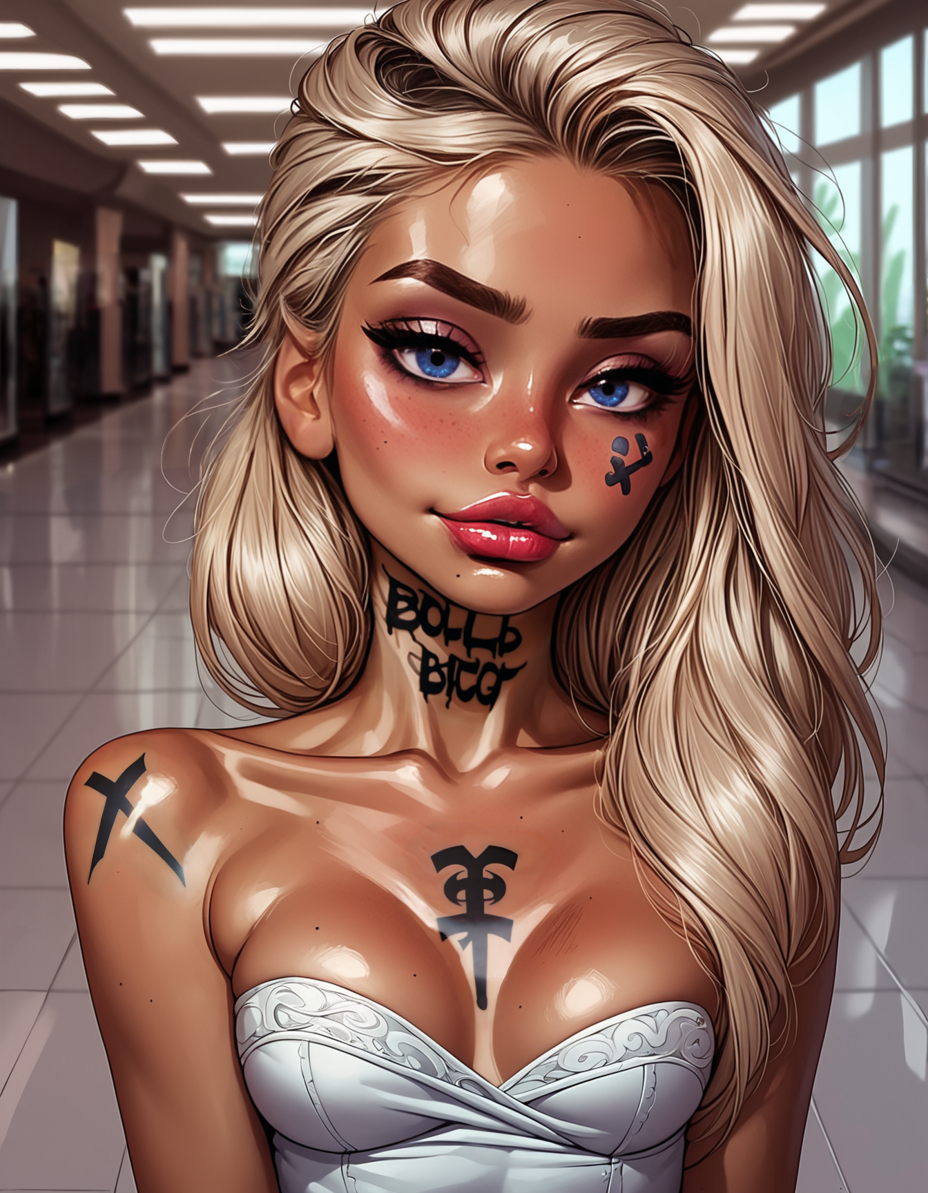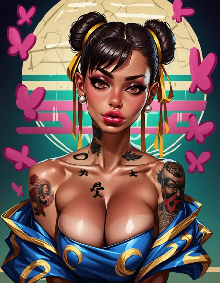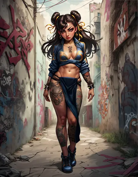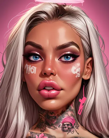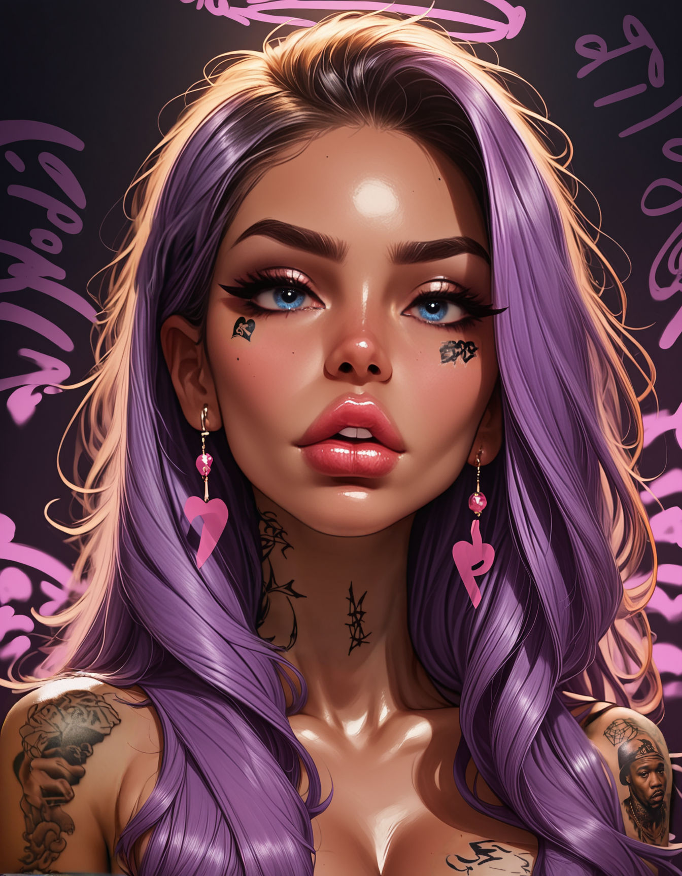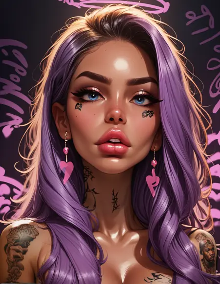 이 작품은 사이버펑크, 고딕 미학, 도시 거리 예술 또는 그래피티 스타일의 요소와 같은 다양한 현대 미술 운동 및 서브컬처에서 영감을 얻은 듯하다. 특히 문신과 글자에 사용된 강렬한 검은 선은 거칠고 거친 분위기를 강화한다.