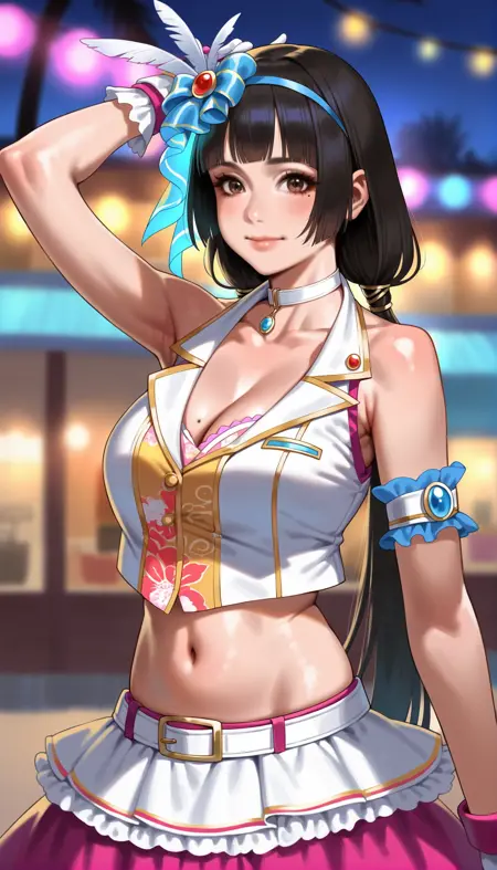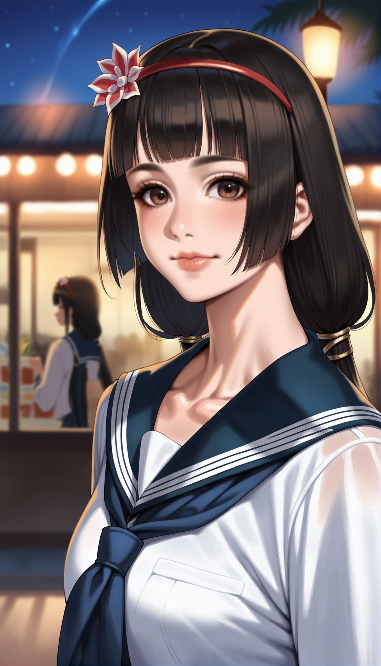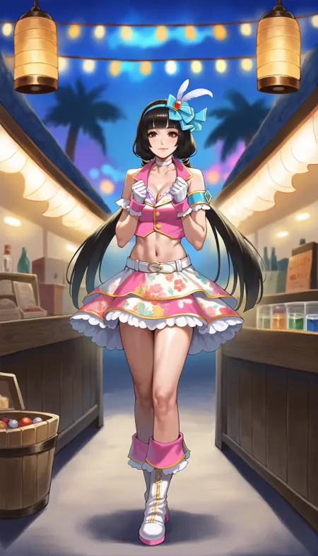 私のプロンプトは基本的に[キャラクターの特徴]+[スタイル]+[表情]+[衣装]+[カメラアングルと動作]+[背景]の順で構成しており、必要に応じて削除または変更してください。