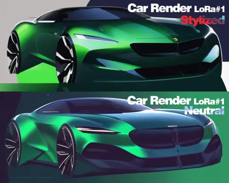 For specific PROMPT, please refer to the display image, Some display images are produced by fooocus, so there will be a lot of info of the images. trigger word is "car render style."