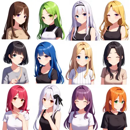 赤髪、青髪、緑髪、白髪、黒髪、金髪、銀髪、金髪、茶髪、紫髪、ピンク髪、水色髪