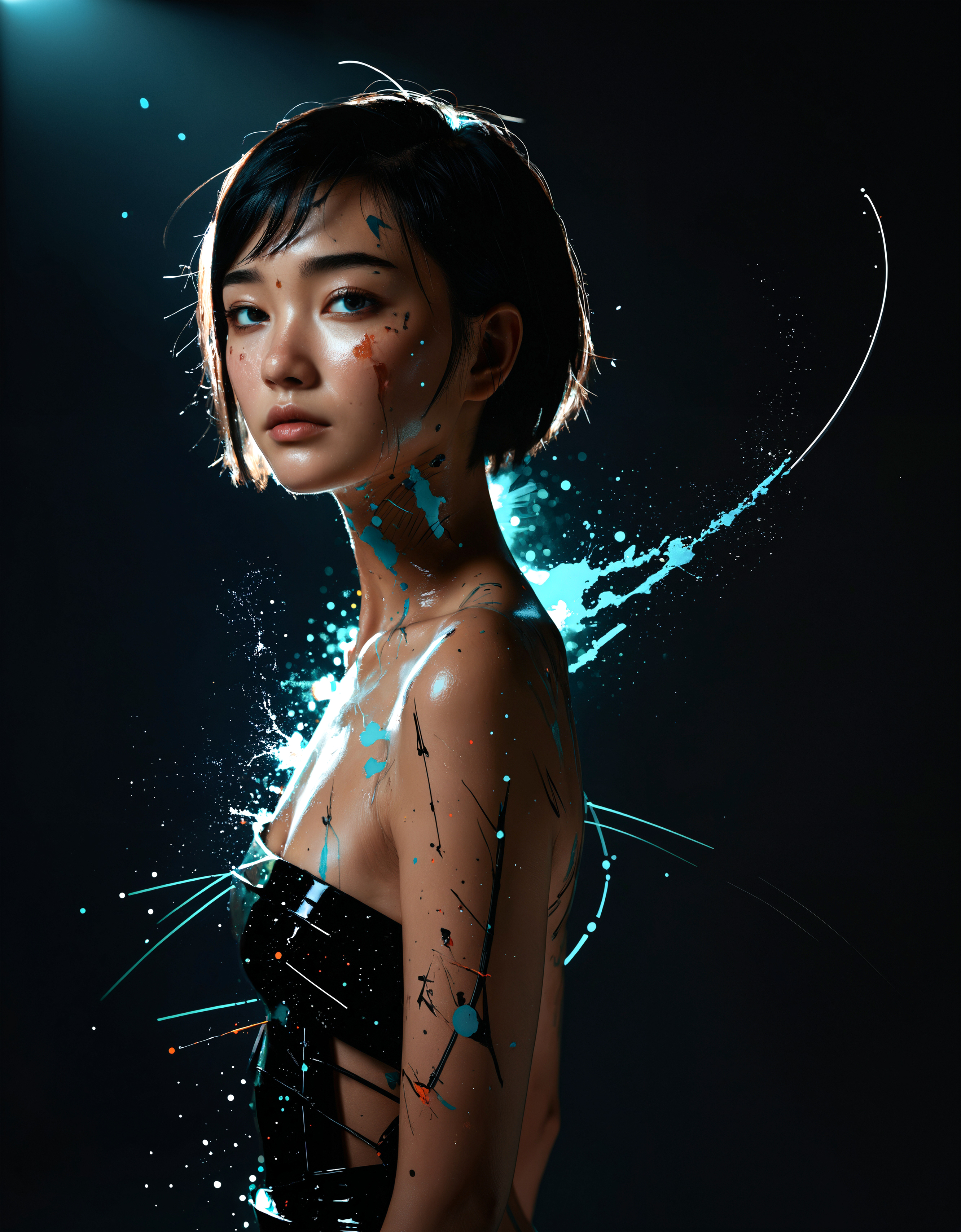 此 LoRA 可增强飞溅效果(如颜料、水等)的对比度与真实感,通常会使背景变暗。