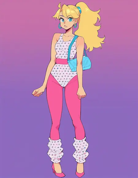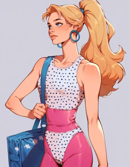 キーワード:hud_b4rb、ノースリーブレオタード、ピンクのレギンス、星のプリント、青いフープイヤリング