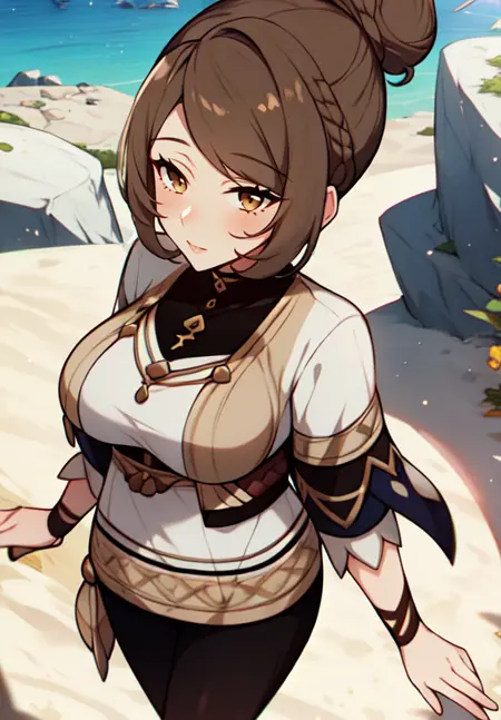 (masterpiece, best quality),(depth) of (field), lora:Atefeh001:0.9 Atefeh, 1girl, hair bun, brown eyes, brown hair, adult