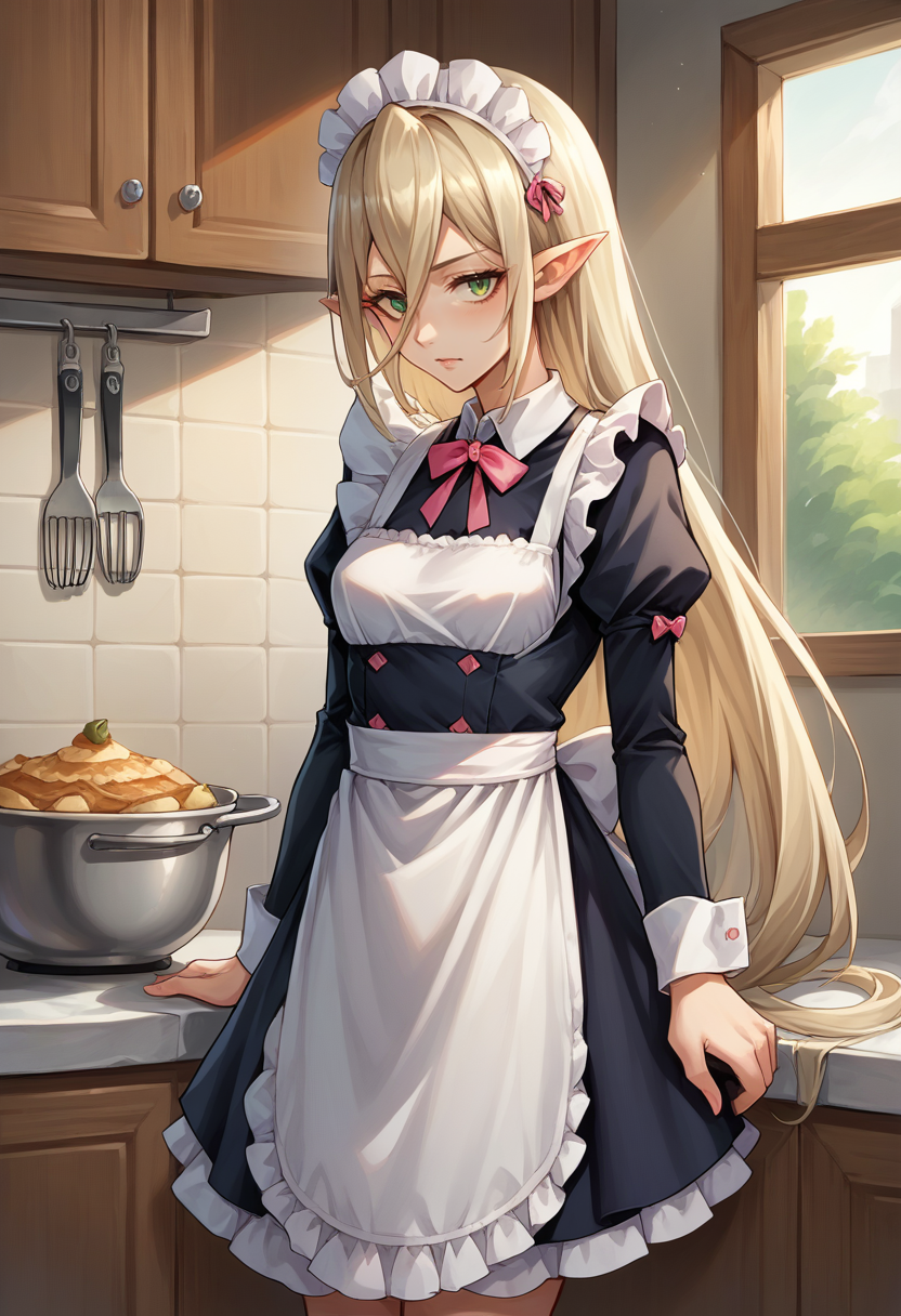 Sometimes adding "blonde hair" can help with her hair color turning too greenish.