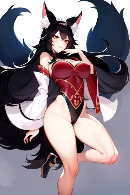 아히리가 나타나지 않는다면, 프롬프트에 animal ears, facial mark, fox ears, fox tail, orange eyes, multiple tails, tail을 추가해 보세요. 모델로는 AbyssOrangeMix2 또는 AnyLoRA를 추천합니다.