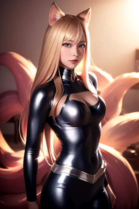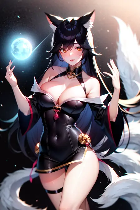 If Ahri doesn't show up, try to add animal ears, facial mark, fox ears, fox tail, orange eyes, multiple tails, tail to the prompt. As for the model I suggest AbyssOrangeMix2 or AnyLoRA.