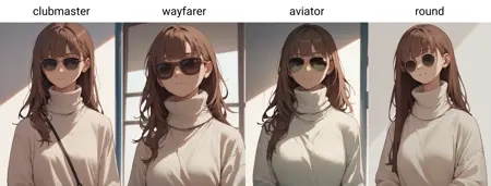 LoRA 模型训练用于生成类似雷朋经典款式的眼镜:wayfarer、clubmaster、aviator 和圆形。