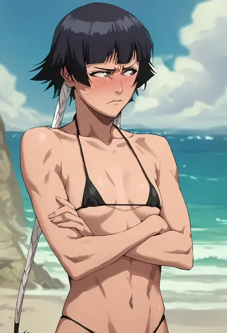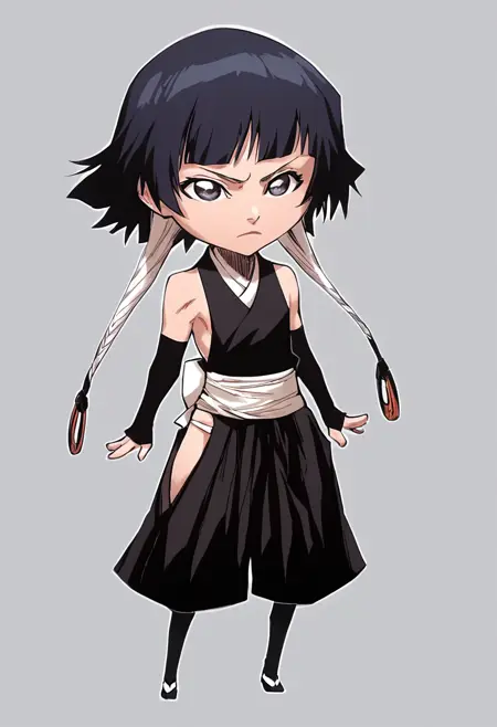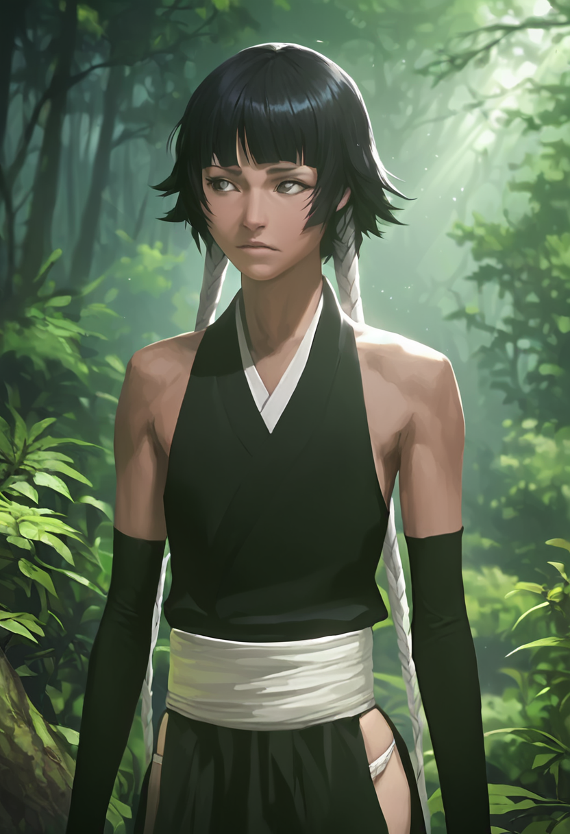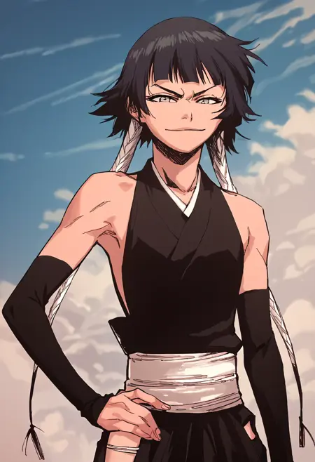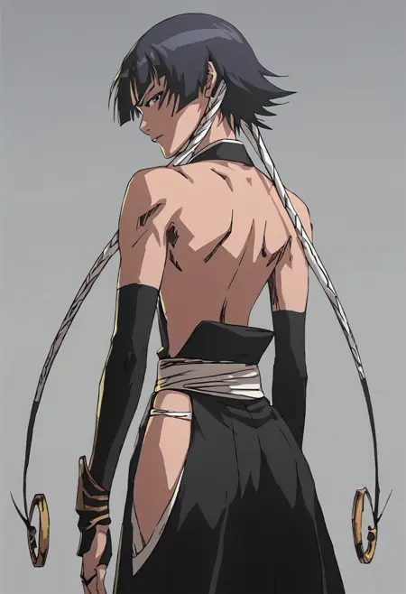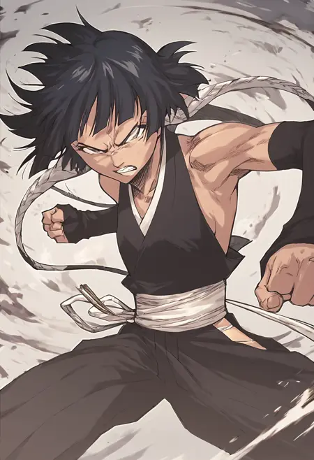 Suzumebachi was tagged with "shikai", but it's clear there weren't enough examples to train the association. Has a habit of showing up on both arms, as cuffs, or on other characters. Putting "bracer" in the negative prompt tends to remove it.