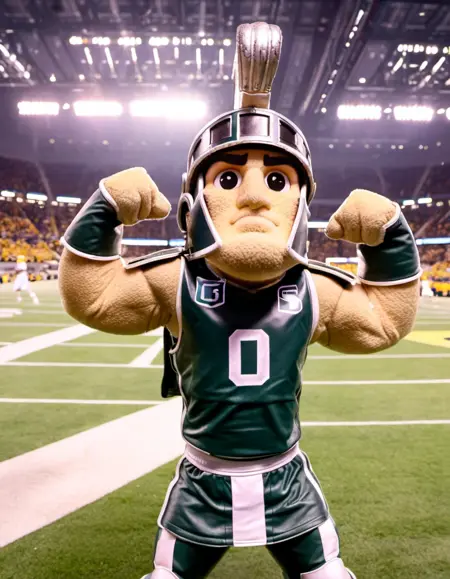 a photo of sport-mascot of a mascot of the michigan state spartans a gladiator flexing his arm