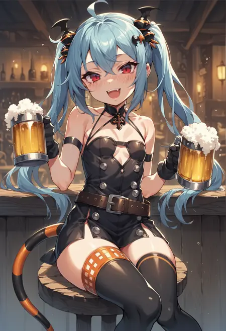 주요 태그: 긴 머리, 파란 머리, 빨간 눈, 트윈테일, 머리 장식, 짧은 드레스, 벨트, 꼬리, 장갑, 허벅지 양말, 허벅지 스트랩, 부츠