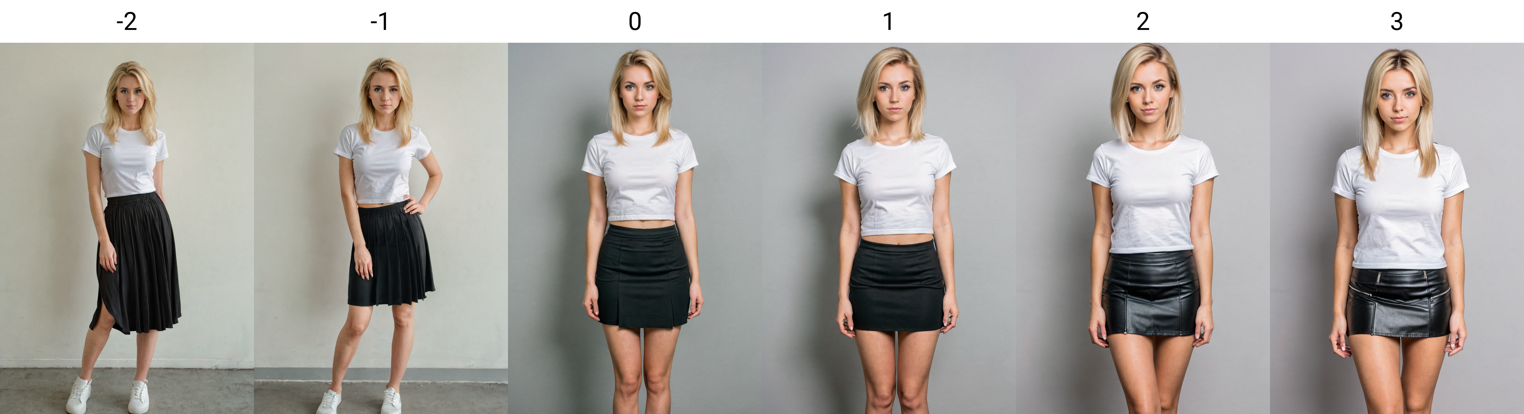 スカートの長さを調整するスライダーを追加しました。一部のドレスにも対応しています。画像の変化が大きく、アニメ向けのLoRAの学習には慣れていないため、あなたの方が私より良い結果を得られる可能性が高いです。私はアニメ自身にそれほど精通していないからです。しかし、私のPony版について以下の質問を目にしました:Skimpify Slider