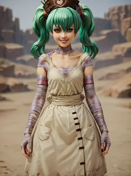使用触发词:jessie、双马尾、帽子、绷带、绿发、水色头发、护士帽
