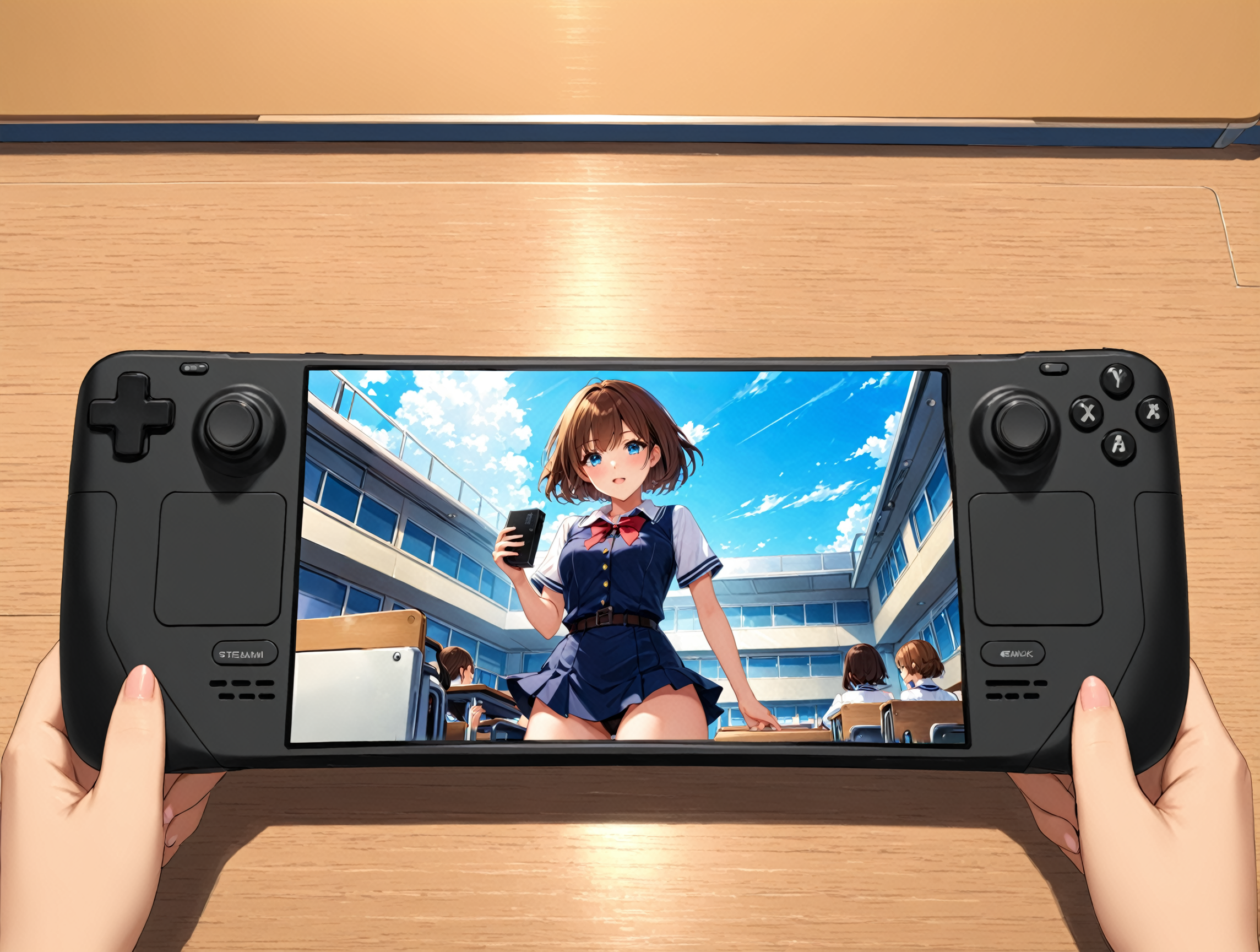 lora:steamdeck.sdxl.v2:0.85 steamdeck, (fontalsteam), blue steambackground