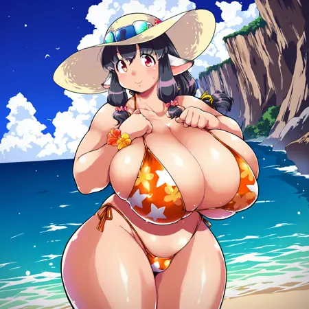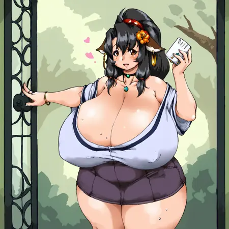 타타라의 작품과 유사한 느낌을 원한다면 huge breasts 또는 gigantic breasts를 권장합니다.