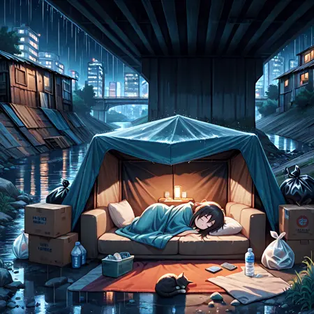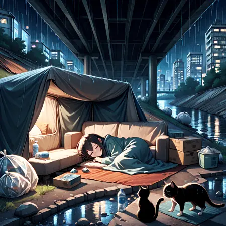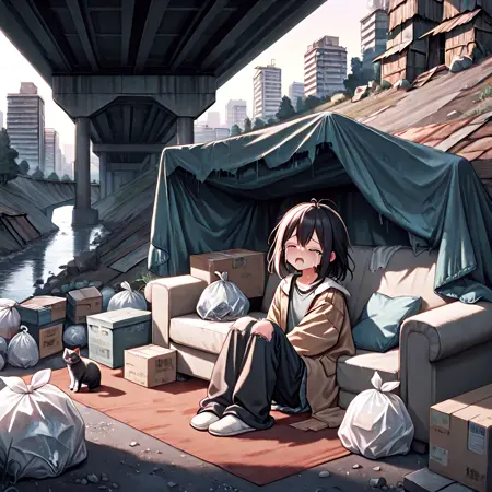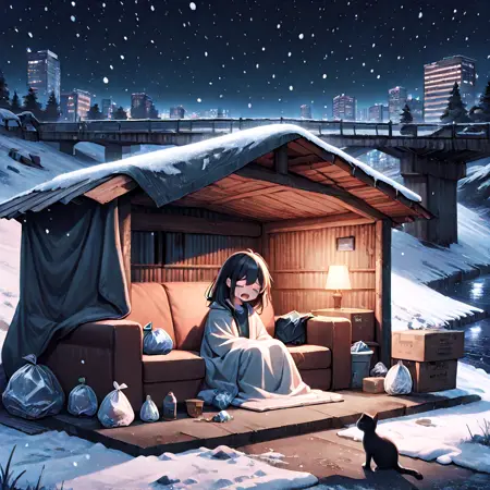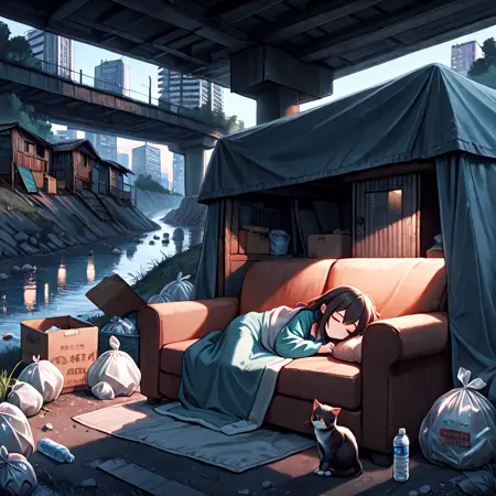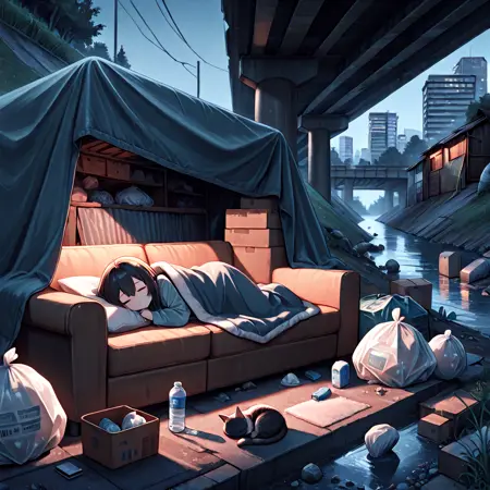 Note: If need standing or sleeping, please add "standing" or "sleeping". If girl has cat ears, please add "animal ears" and "cat ears" in negative. Since 2025.3.7, I changed file name, 50pics_shackunderbridge -> girlhateshackunderbridge. (SD 1.5)