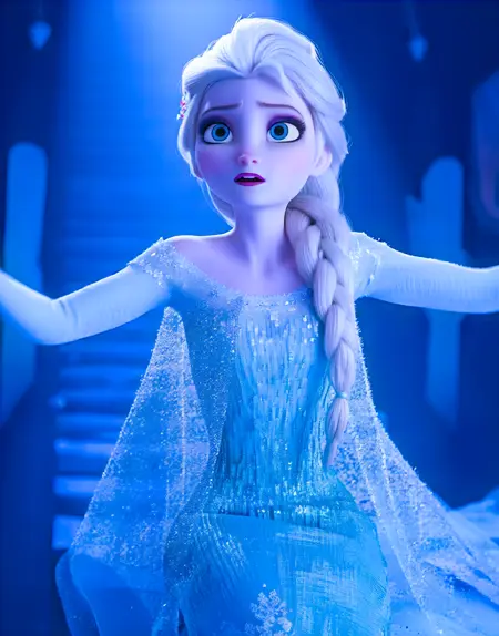 elsa's outfit-1: Elsa's Sparkling Blue Dress (빗머리, 오른쪽 어깨에 빗머리)