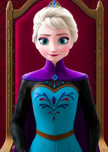 elsa's outfit-2: Elsa's Coronation Dress (왕관, Elsa's Coronation Dress, 위로 모은 머리, 보라색 망토)