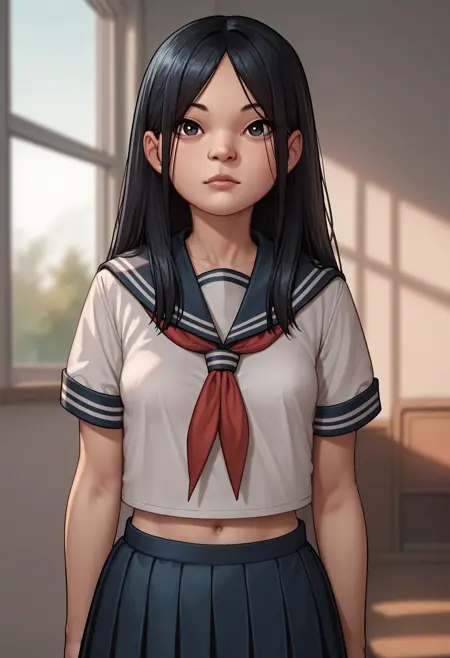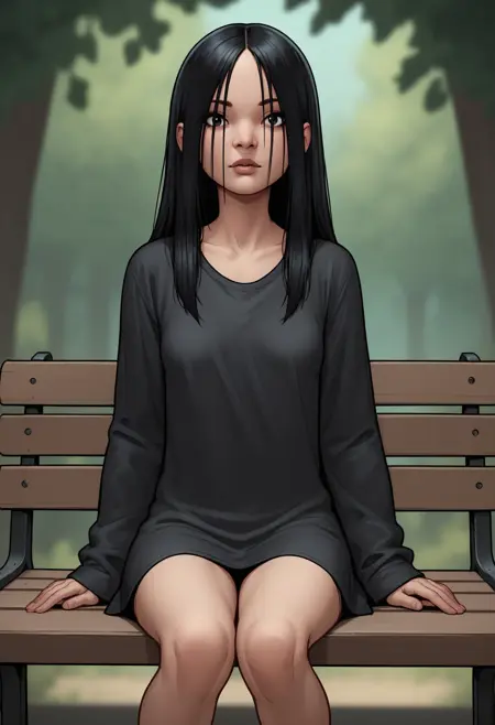 1girl, black eyes, black hair, long hair