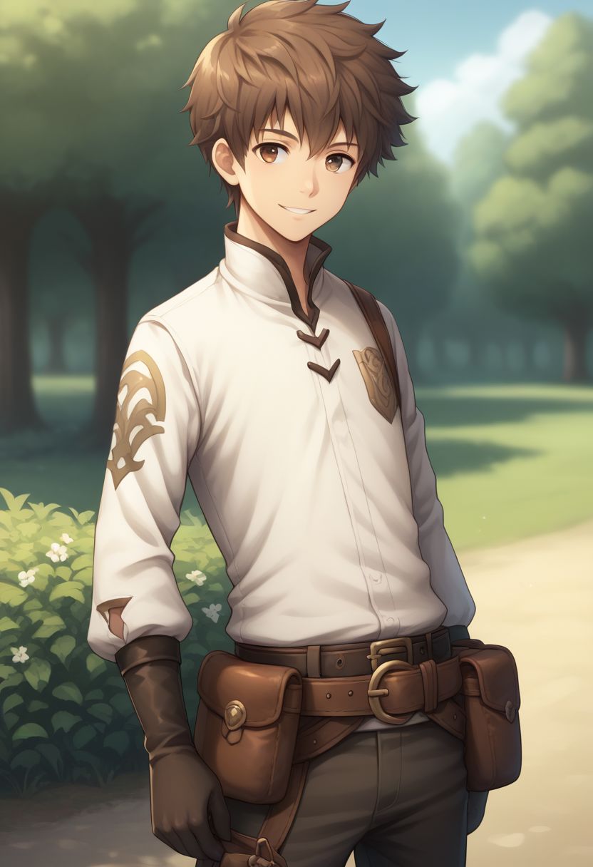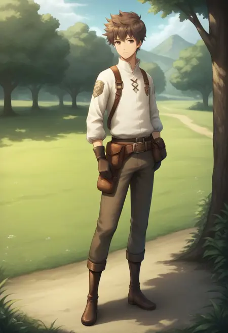 티즈, 1명의 남자, 단독, 남성 중심, 장갑, 갈색 머리, 갈색 눈, 주머니, 벨트, 바지, 부츠