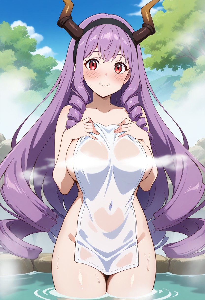 | 训练词汇 | patTyphon, very long hair, purple hair, sidelocks, drill hair, twin drills, red eyes, black hairband, horns, open coat, grey coat, long sleeves, sleeveless shirt, black shirt, clothing cutout, bare shoulders, belt, buckle, covered navel, black leotard, black shorts, thigh strap, thigh belt, asymmetrical legwear, single thighhigh, black thighhighs, socks, grey footwear已复制! |
