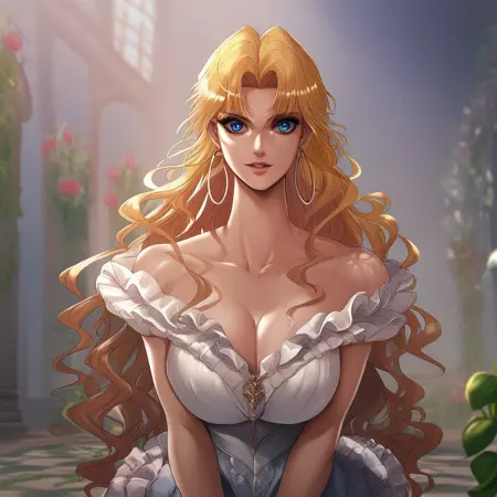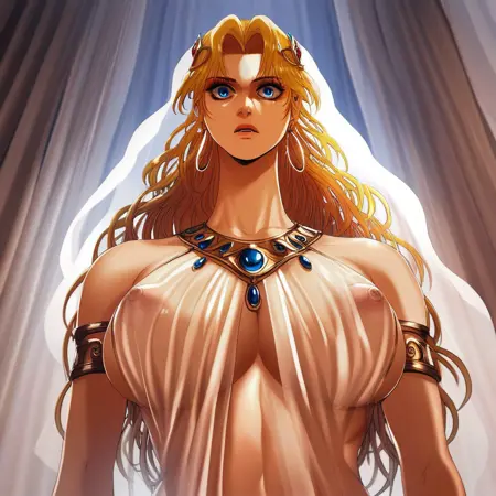 (( lora:princess\_damia:1 , princess_damia, 纤细腰身,宽臀,美丽肌肤,美丽的蓝绿色眼睛,清澈眼神,明亮瞳孔,美丽眼睛,美丽的金色长发,自然美,非凡美丽的女性,有魅力的女性,超性感女性,充满欲望的身躯,性感且带有诱惑性暴露身材的女性,性感体态,丰腴身材,性感美人,无穿孔,无 piercing,))