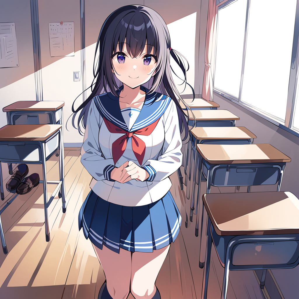 nagasemana, 1girl, nagasemana sailor collar shirt, nagasemana skirt, nagasemana kneehighs, loafers,