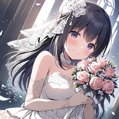 nagasemana, 1girl, nagasemana wedding dress, nagasemana hair ornament, nagasemanaw choker, nagasemana lace gloves, nagasemana print pantyhose, nagasemanaw high heels,